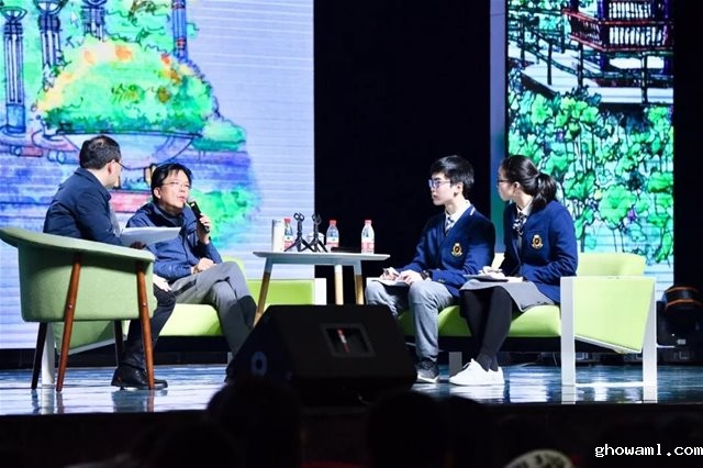 互动环节,同学们踊跃提问,争相与大师对话。每场讲座将近两个小时,同学们沉醉其中,意犹未尽。演讲结束后,同学们依依不舍,久久不愿离去,继续到舞台中央提问,作家们都侧耳聆听,耐心地回答了一中学生的各种问题。“我们如同作家们的一群孩子,是一群开心地、想要汲取更多知识的孩子”,高二年级2班的一位学生说道。